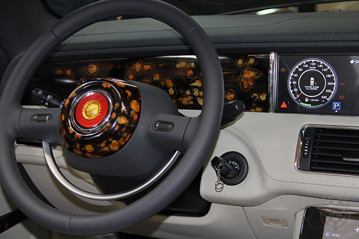 Интерьеры Hongqi L5 (с китайского название переводится как «Красное знамя» и читается как «Хунцы») отделаны натуральной кожей и деревом, притом посреди салона установлена обязательная для парадной машины рукоятка, за которую во время движения могут держаться военачальники. А вот крыши, даже съёмной, не предусмотрено вовсе!
