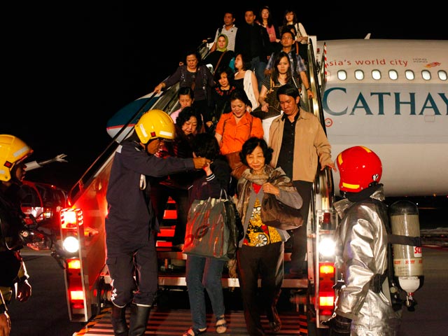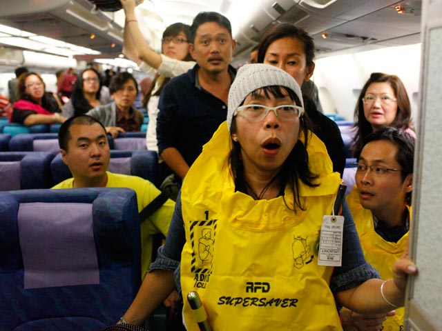 Самолет благополучно приземлился в сингапурском аэропорту. Командир воздушного судна Брэдли Чиккэйм сообщил пассажирам, что пожар в двигателе потушен, и предложил им по очереди, без спешки, покинуть самолет через переднюю дверь.