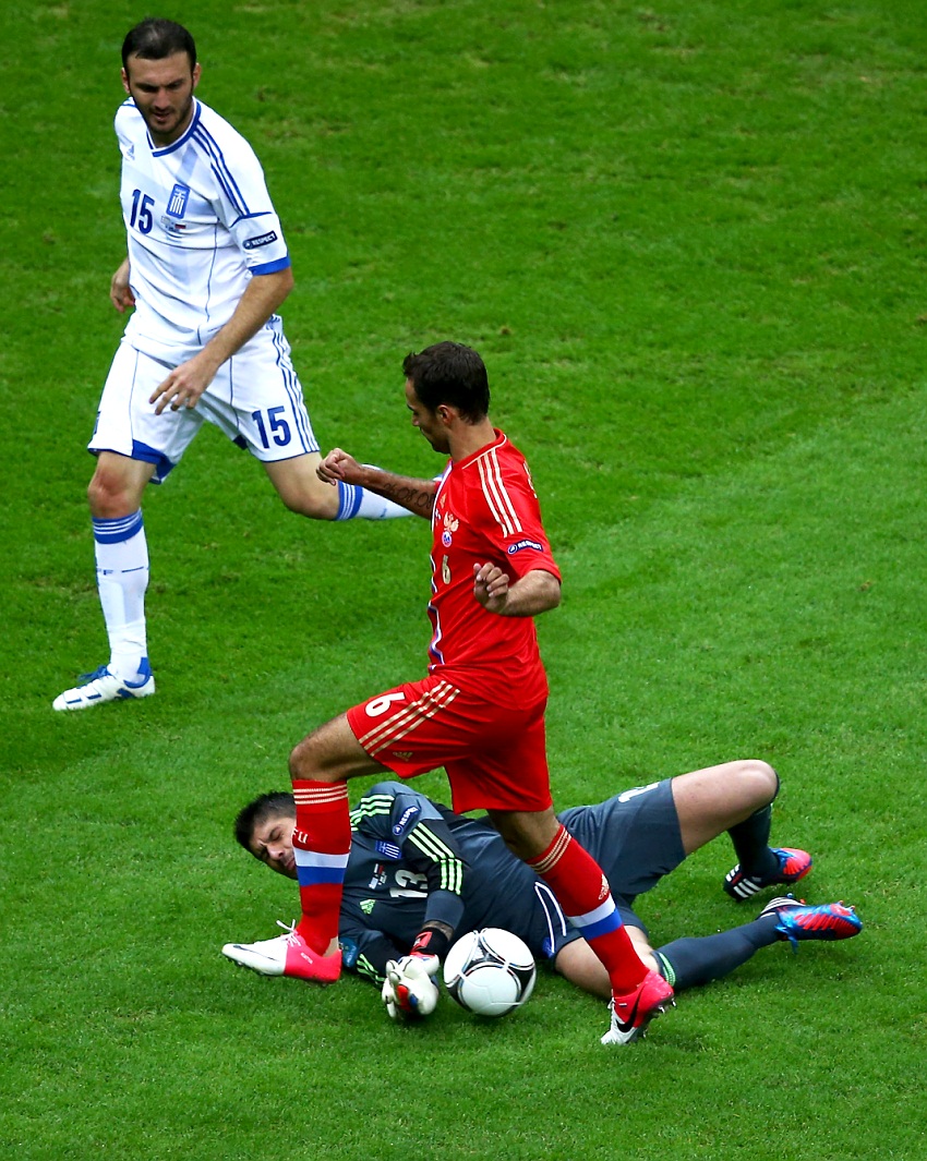 Сборная Греции одержала победу над командой России со счетом 1:0 в матче группы A Евро-2012. Гол Карагуниса в самом конце первого тайма выбил сборную России из турнира
