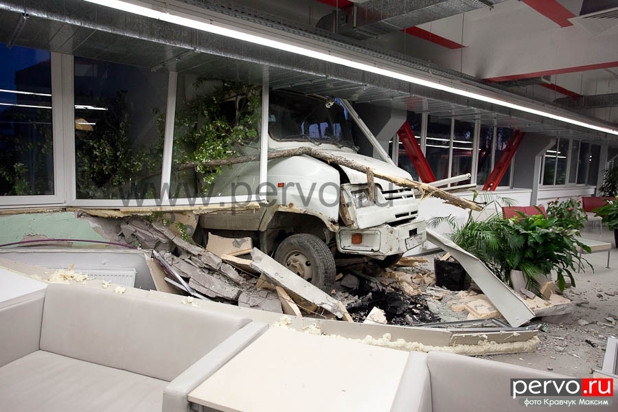 Вчера, 28 мая 2013 года в 23:15, в Первоуральске пьяный водитель на грузовом автомобиле ЗИЛ «бычок» не справился с управлением и допустил съезд и столкновение с учебным центром ПНТЗ, при этом, едва не переехав прохожего, который прогуливался по пешеходной дорожке.