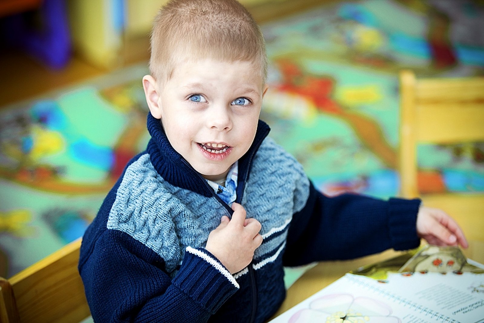 Из всей группы ребятишек Саша привлек наше внимание сразу же. Маленький голубоглазый блондин, самый спокойный и тихий, но при этом самый обаятельный. Воспитатели рассказали, что Саша очень жизнерадостный и улыбчивый, просто стесняется немного нас. А ещё он любит решать все сам, принимает решения очень по-взрослому, самостоятельно, иногда даже командует... и даже ссорится. Немножко.
