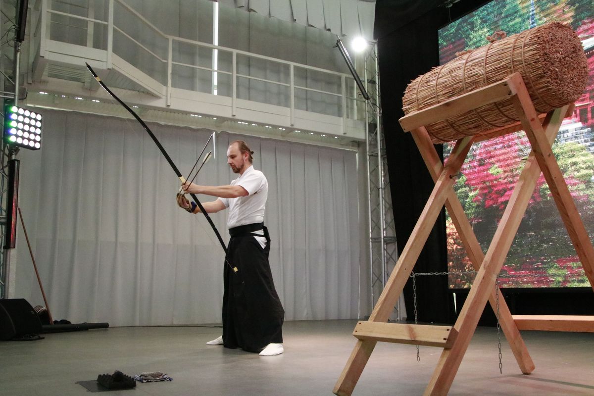Техника стрельбы отлична от европейской: японцы по-другому натягивают тетиву, с другой стороны вкладывают стрелу. Эта техника вырабатывалась веками — так лучникам Страны восходящего солнца было проще стрелять, не выходя из седла.