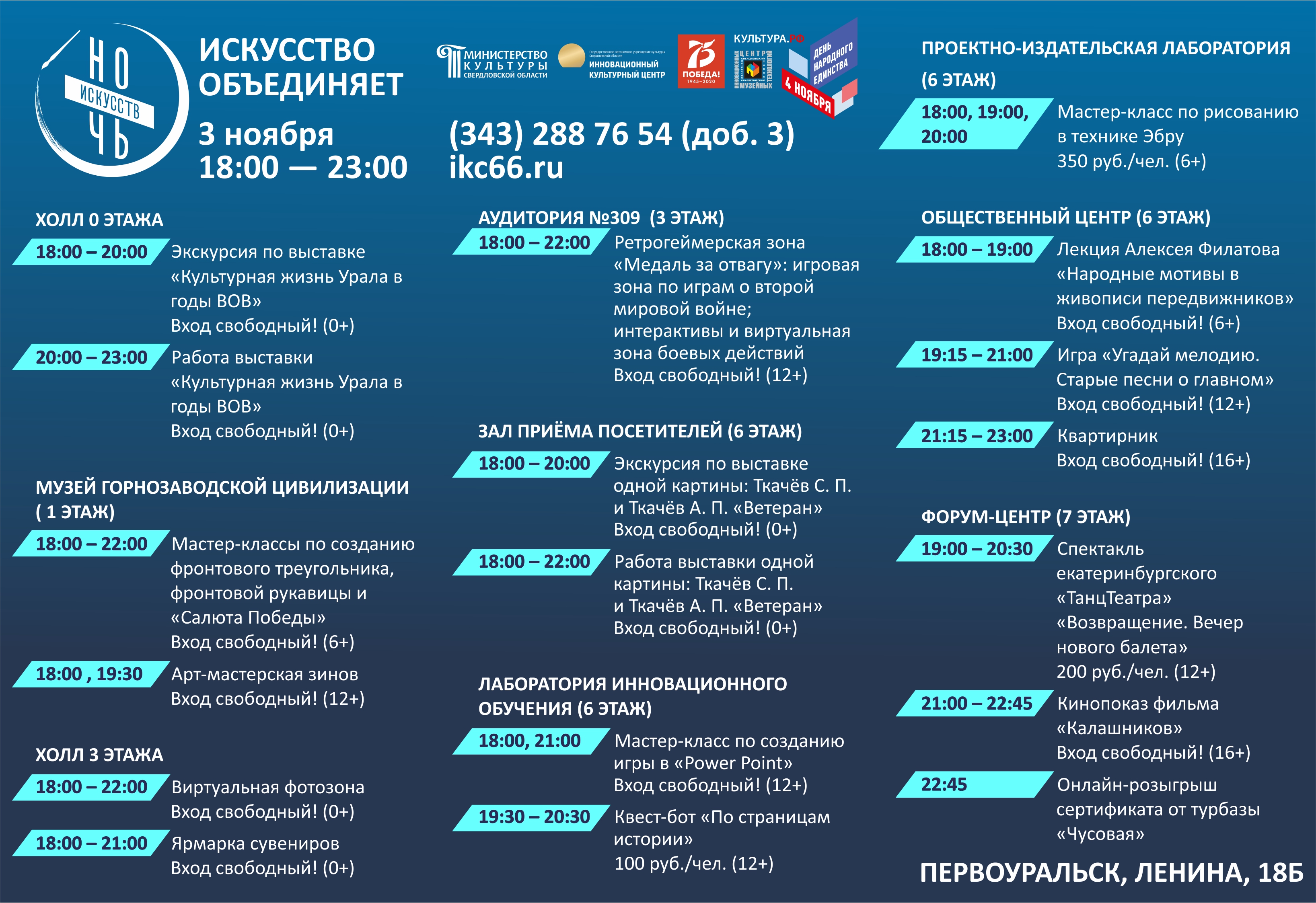 В рамках главного культурного события осени в ИКЦ вас ждут интерактивы, ретрогеймерская зона, арт-мастерские, фотозоны, мастер-классы, музыкальная программа и балетный спектакль. В этом году акция посвящена 75-летию Победы.