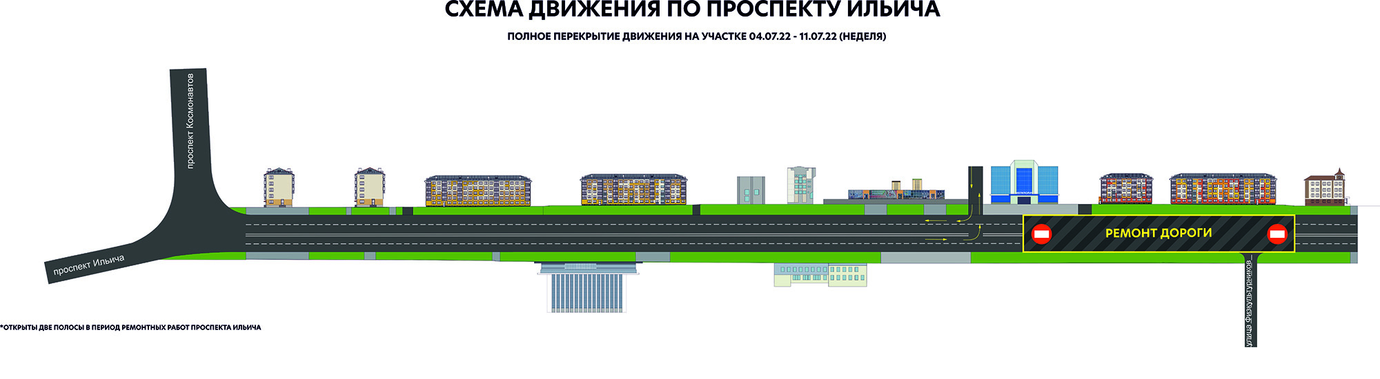 До 4 июля подрядчик выполнял работы только на одной стороне проезжей части, теперь технология требует действий по всей ширине проспекта. В данный момент ремонтируют отрезок от улицы Физкультурников до ТЦ «Мегаполис».