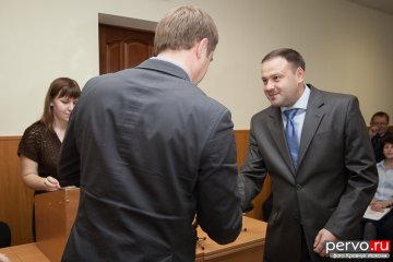 Сегодня в зале заседаний администрации Первоуральска состоялась церемония вручения удостоверений депутатам Первоуральской городской Думы созыва 2012. Удостоверения пока временные – более солидные «корочки» они получат в ближайшее время. Вместе с удостоверениями депутатам был вручен первый пакет документов, подготовленный аппаратом городской Думы для того, чтобы вновь избранные депутаты могли провести свое первое заседание.