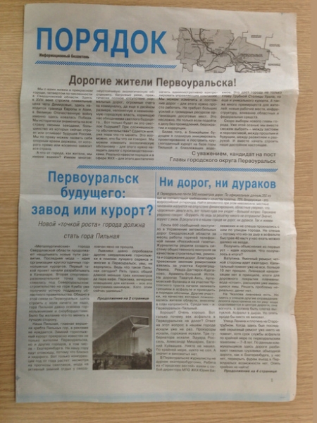 Параллельно с последними событиями в Первоуральске появился информационный бюллетень «Порядок». Газета не имеет выходных данных (но тираж огромен: агитки — по всему городу, говорят первоуральцы) и ее направленность пока нейтральна.