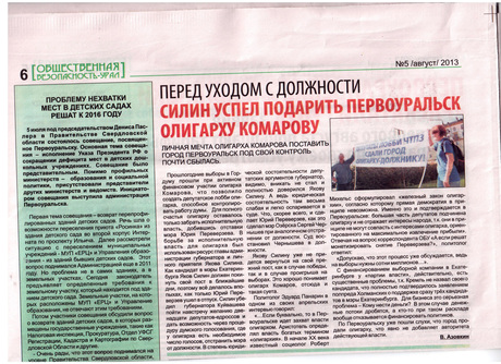 Сегодня опальный чиновник активизировался в целом ряде печатных СМИ: кроме «Вечернего Первоуральска», интервью с Переверзевым вышло в прокоммунистическом издании «Общественная безопасность — Урал», редактором которого является супруга Андрея Рожкова. Экс-глава города рассказывает там про утомительное противостояние с олигархом Андреем Комаровым и «Единой Россией», сообщает Ura.ru