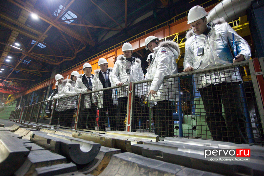 Пребывание членов федерального и областного правительства в Первоуральске началось с обзорной экскурсии по цехам ПНТЗ. Затем гостей провели в учебный центр предприятия, где и состоялось собственно совещание.