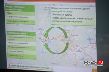 Алексей Дронов, глава администрации городского округа Первоуральск, представил федеральным и областным руководителям свой план стратегического развития территории «Первоуральск 300». Рассказал о конкурентных преимуществах города, об инвестиционных программах – комплексном жилищном строительстве, организации индустриального парка, программе перемещения промышленных предприятий из Екатеринбурга на более дешевую землю существующих в Первоуральске промышленных площадок.