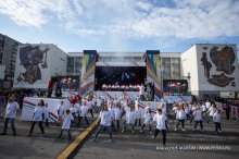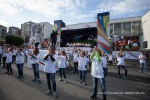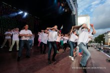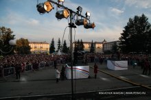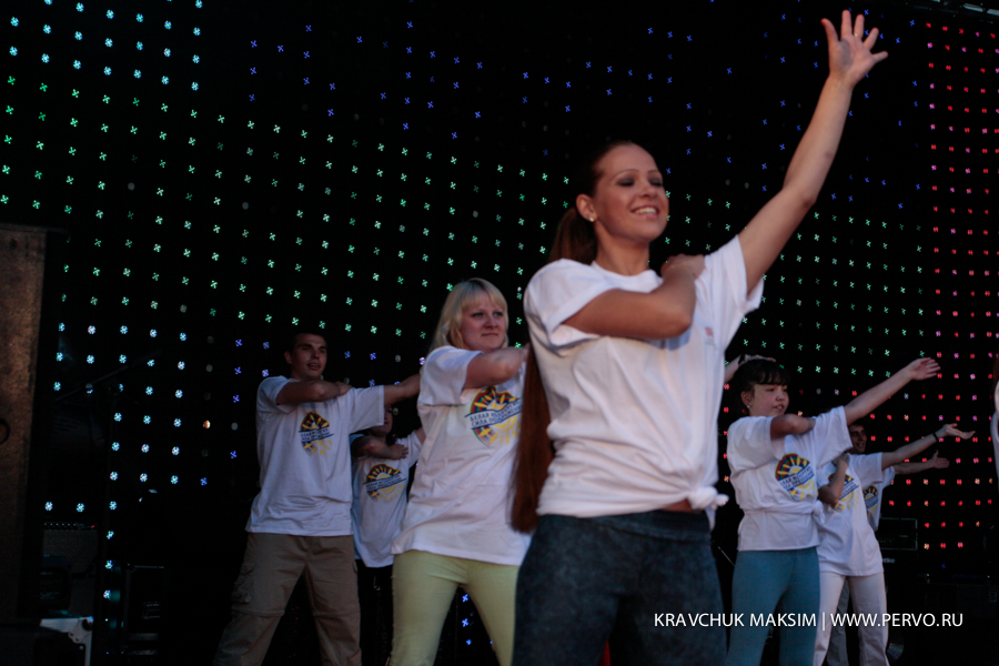 На набережной пруда, вопреки дождю, проходили веселые семейные старты, выступления фитнес-клубов и творческой самодеятельности. Одиннадцать крепких мужчин определили самого сильного, перекатывая автомобильные покрышки и бросая на дальность 16-килограммовые гири. Самые стойкие зрители были вознаграждены главным зрелищем – показательными прыжками первоуральских парашютистов из клуба «Саланг» Центра детского творчества. На какой-то момент тучи, словно по заказу, развеялись, что позволило выполнить программу праздника.