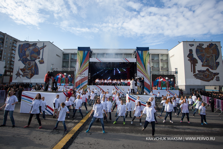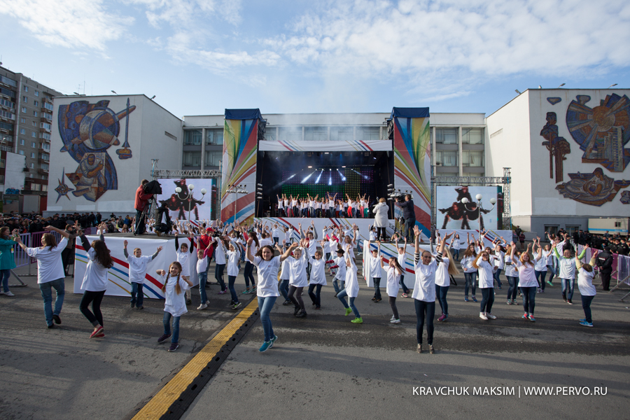 Чтобы поздравить первоуральцев с тройным праздником, на сцену поднялись заместитель председателя правительства Свердловской области Яков Силин, заместители председателя Законодательного Собрания Свердловской области Виктор Шептий и Елена Чечунова, председатель Совета директоров группы ЧТПЗ Александр Федоров, генеральный директор группы ЧТПЗ Виталий Садыков, глава городского округа Николай Козлов.