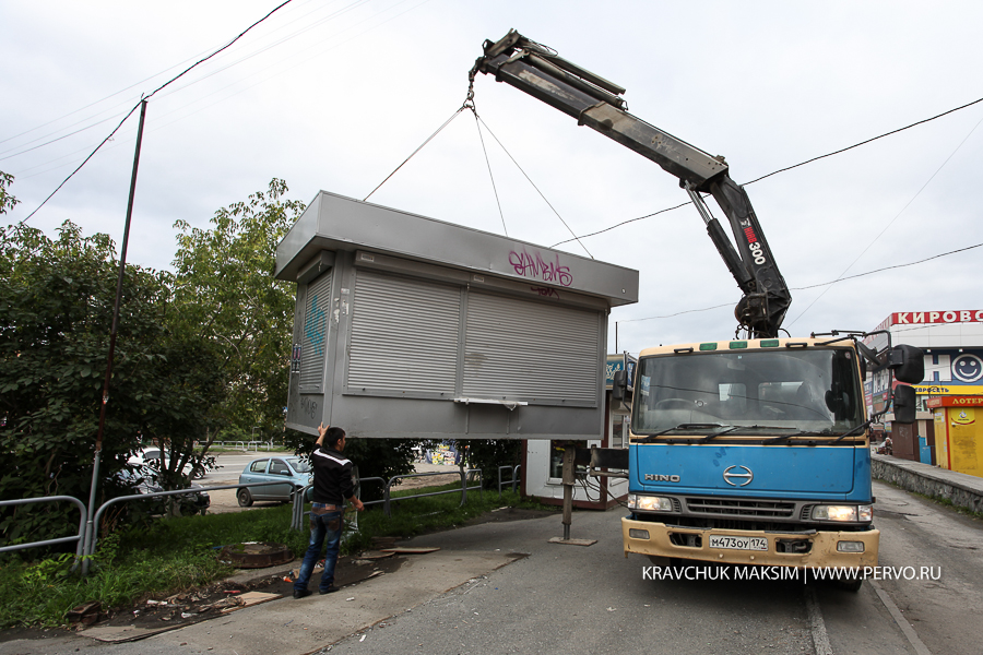 Администрация Первоуральского городского округа продолжает работу по демонтажу незаконно установленных торговых павильонов. В этот раз демонтажу подлежали киоски, расположенные на перекрестке улиц Ленина — Чекистов.