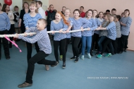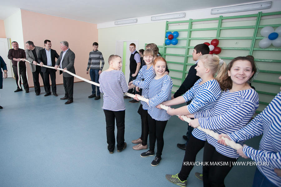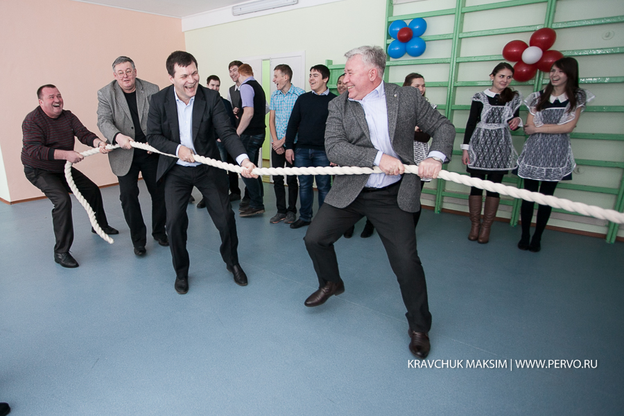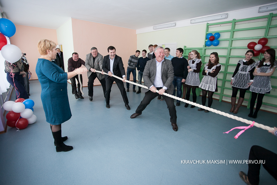 Прекрасным подтверждением слов Кати стало выступление в новом зале школьной команды –участницы социально-педагогического соревнования «Будь здоров». Ребята продемонстрировали прекрасную физическую подготовку, вызвав взрослых гостей – мужчин на дуэль по перетягиванию каната и с честью выиграв ее.