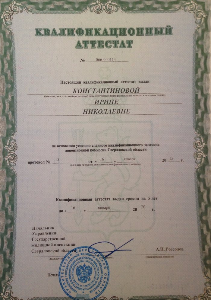 Руководителям вручены именные квалификационные аттестаты за подписью начальника управления государственной жилищной инспекции Свердловской области Алексея Россолова.