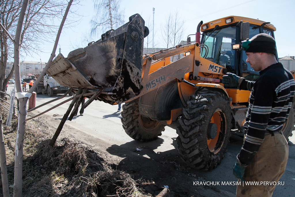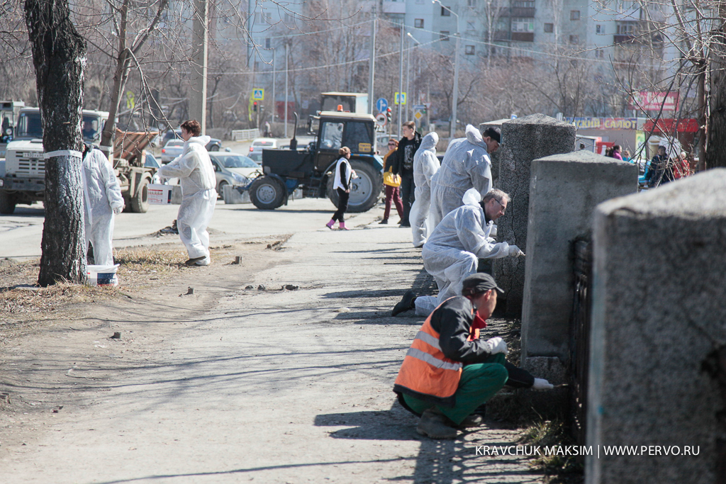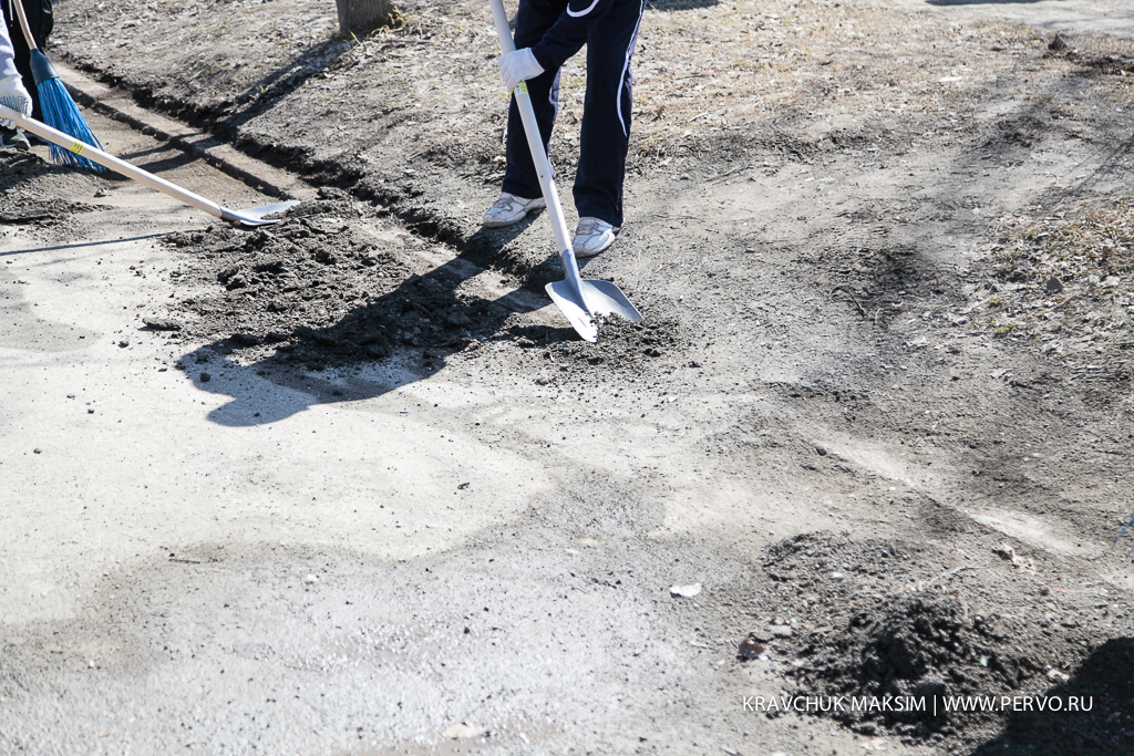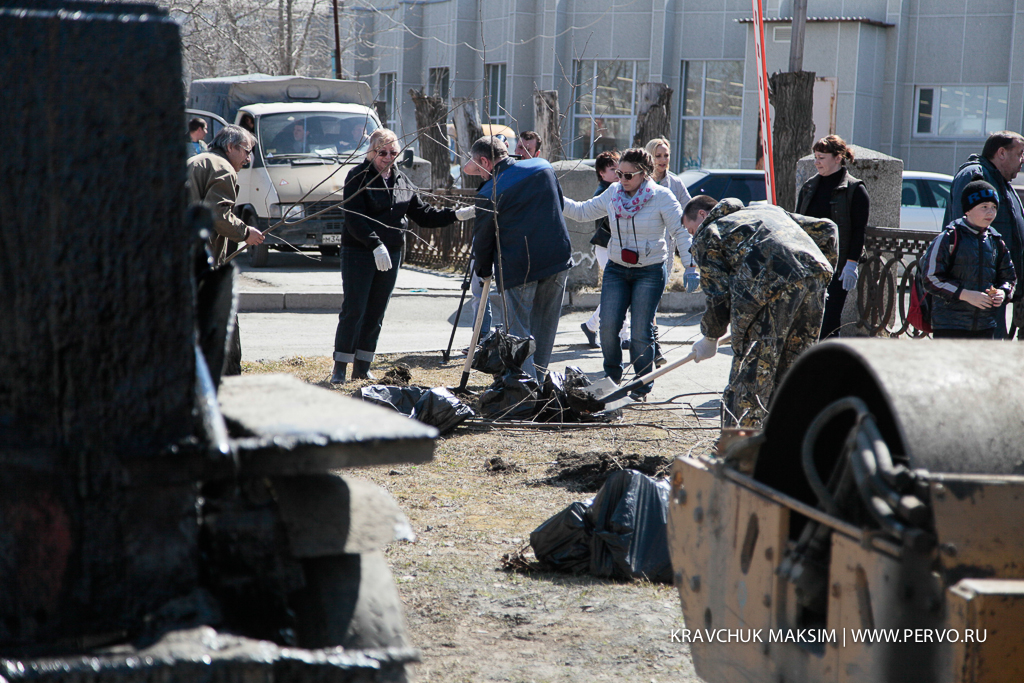 Поделив территорию на сектора, каждый отдел убирает вверенный ему участок. Сейчас субботник в самом разгаре.