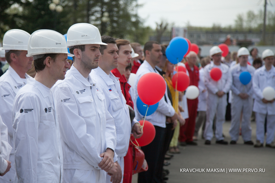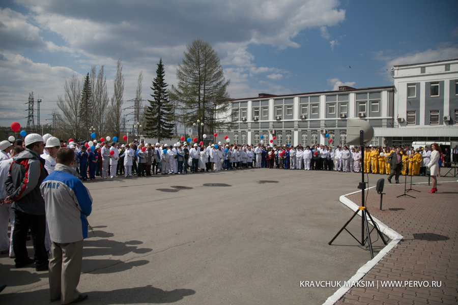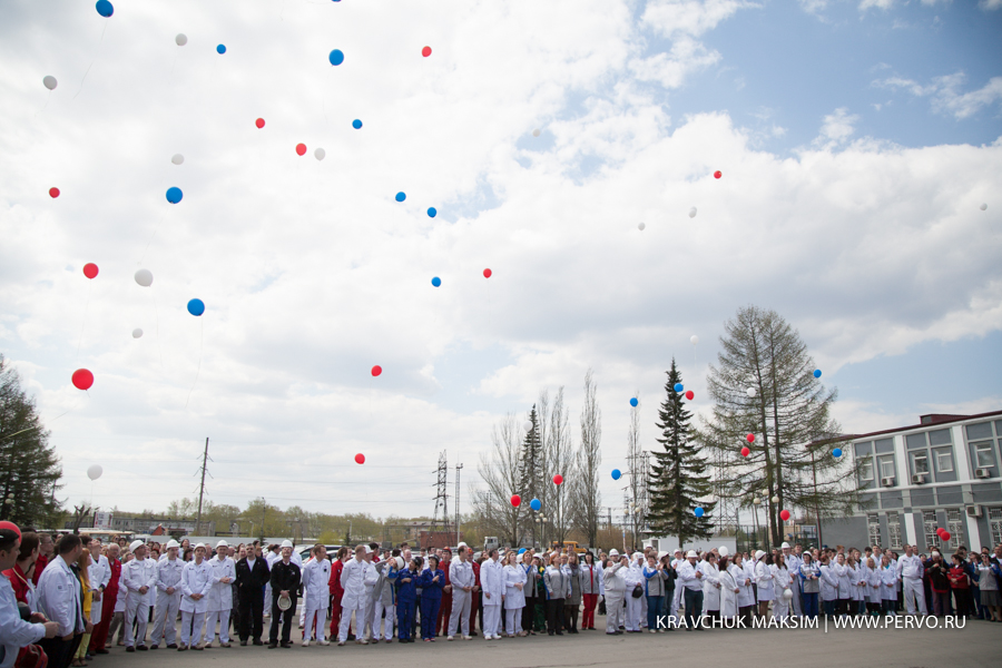 Праздничный митинг завершился песней «Сталевары России» и символичным запуском в небо 81 воздушного шара.