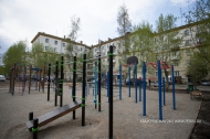В следующем дворе – территории у дома № 38 по улице Ватутина и близлежащих «пятиэтажек» замечаний чуть больше. Вынести старые, оставленные на территории парковок, опоры наружного освещения, восстановить перекрытия, отделяющие пешеходные дорожки от газонов. Замечания не критические, тем более, что все увиденные взрослыми недоделки абсолютно не мешают ребятне. В этом дворе всегда многолюдно. И это не удивительно площадка разбита на зоны: спортивная площадка здесь – не только перекладина-турник, а настоящий мини-спортзал, где тренироваться могут ребята постарше, предусмотрены и элементы для малышни. Есть и горки, и качели, и скамейки для родителей и старшего поколения жителей двора.