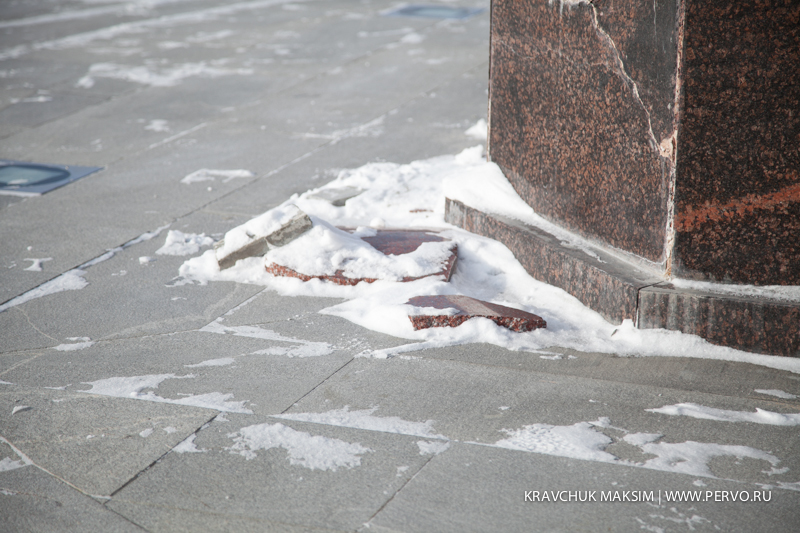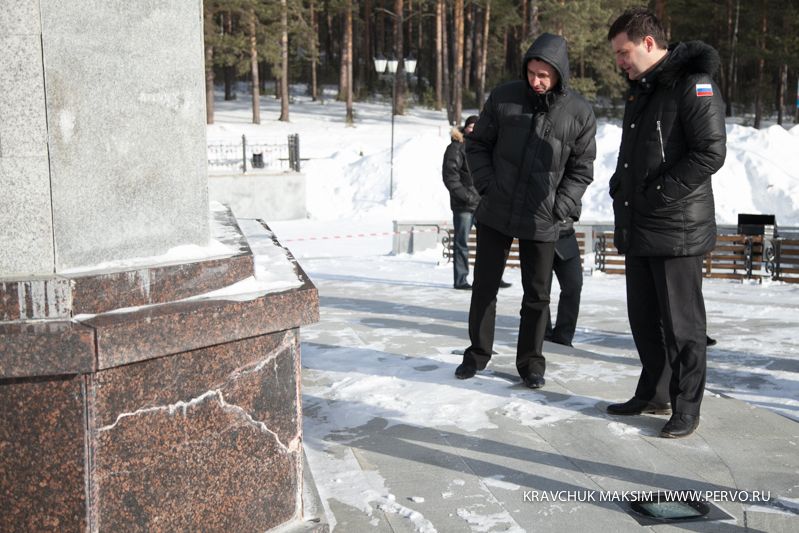 Первый комиссионный осмотр обелиска прошел в феврале. Объект тогда выглядел не лучшим образом: плиты, которыми вымощена площадка памятного знака, растрескались, повреждена была и непосредственно облицовка столпа. Подход к памятному знаку даже пришлось закрыть для посетителей. Тогда и было принято решение: реконструкции быть, тем более что об этом в своих обращениях просили и горожане.