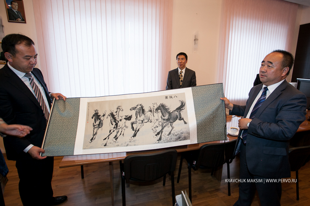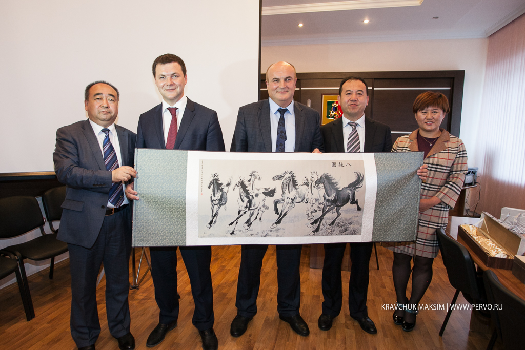 В завершении встречи руководители городов-побратимов обменялись памятными подарками. В Хайлар улетели глиняные игрушки, выполненные руками первоуральских мастеров, а в память о первом визите китайской делегации в нашем городе останется вышитая шелком картина с изображением лошадей – символа победы.