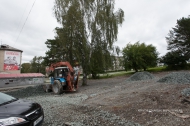 Здесь полным ходом идет обустройство парковки, параллельно ведутся работы по очистке захламленной территории бывшего хоздвора. Вычищать пришлось и всю территорию парка, причем, не только от мусора как такового, но и, к примеру, от старых больных деревьев, зарослей крапивы и т.д.