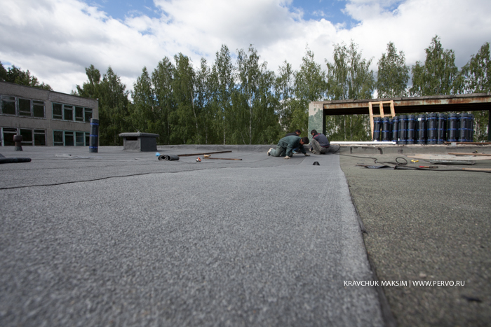 В школе №4 подрядчик ремонтирует кровлю, но не справляется: не выполнены технологические условия (примыкания), и во время сильного дождя подтопило библиотеку и актовый зал. Глава администрации поднимается на крышу, осматривает ход работ. И объясняет бригадиру: подобные ляпы недопустимы. И если в сроки работники не уложатся, подрядчика придется поменять или прийти к нему на помощь.