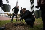 По завершении высаживания дубовой Аллеи мира участники мероприятия выпустили в небо белых голубей, еще один символ мира.