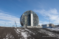 Фасад нашего ИКЦ, как всем хорошо известно, представляет собой круг, однако даже это обстоятельство никак не повлияло на работу монтажников.