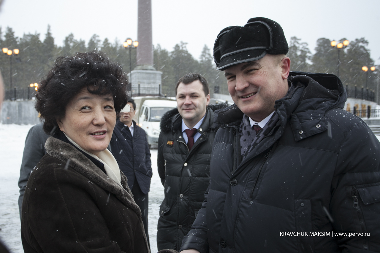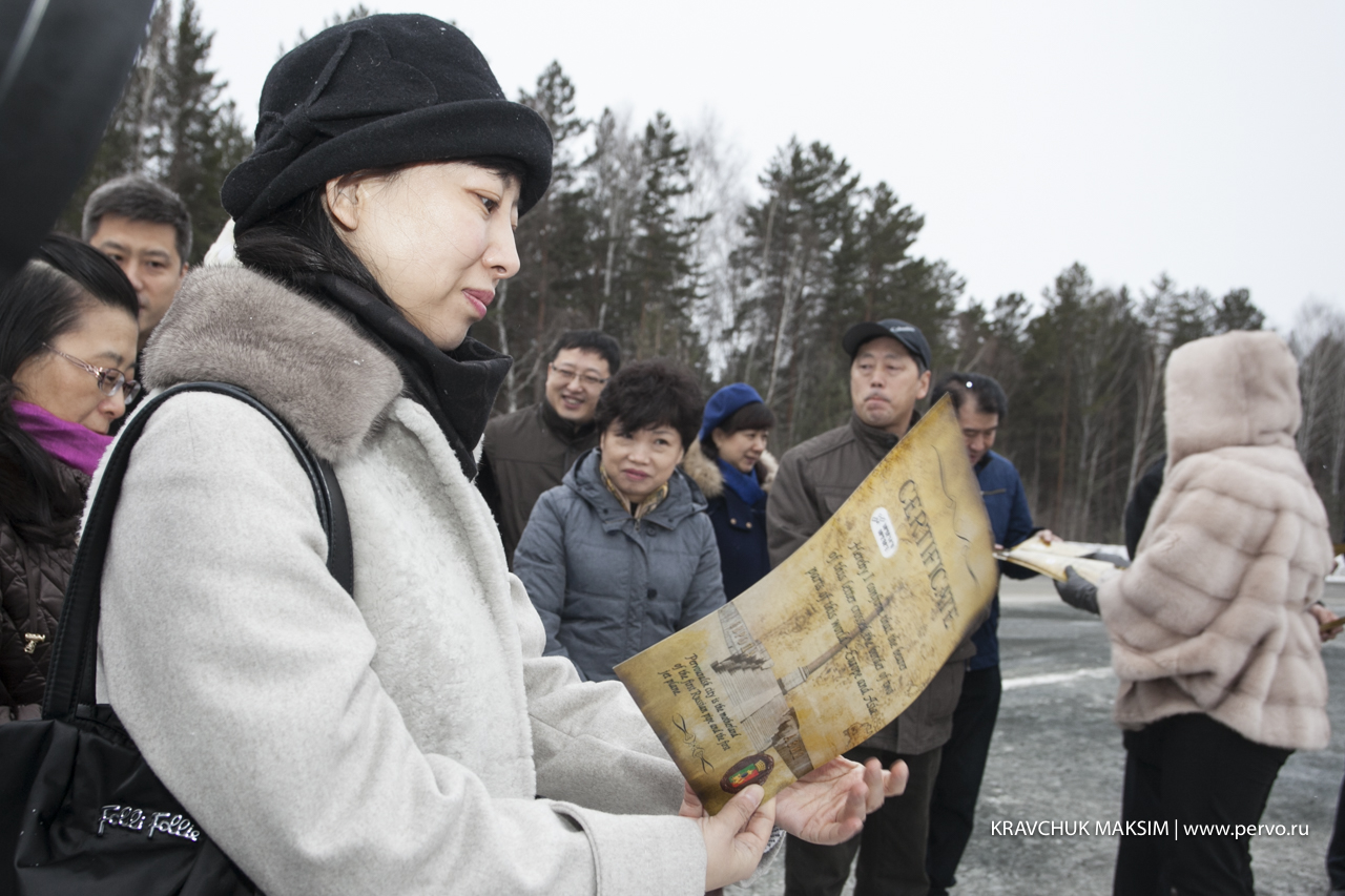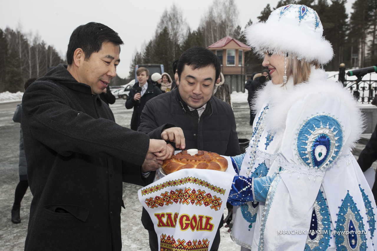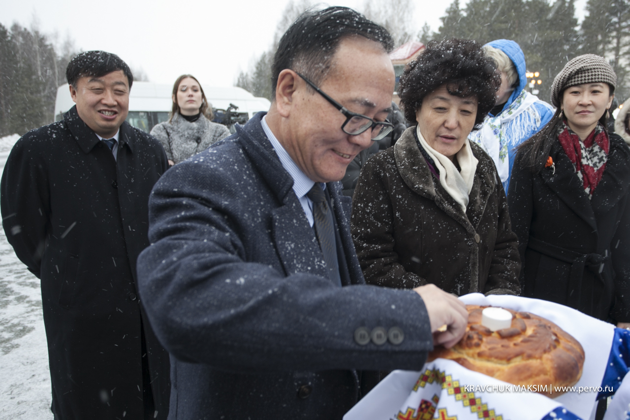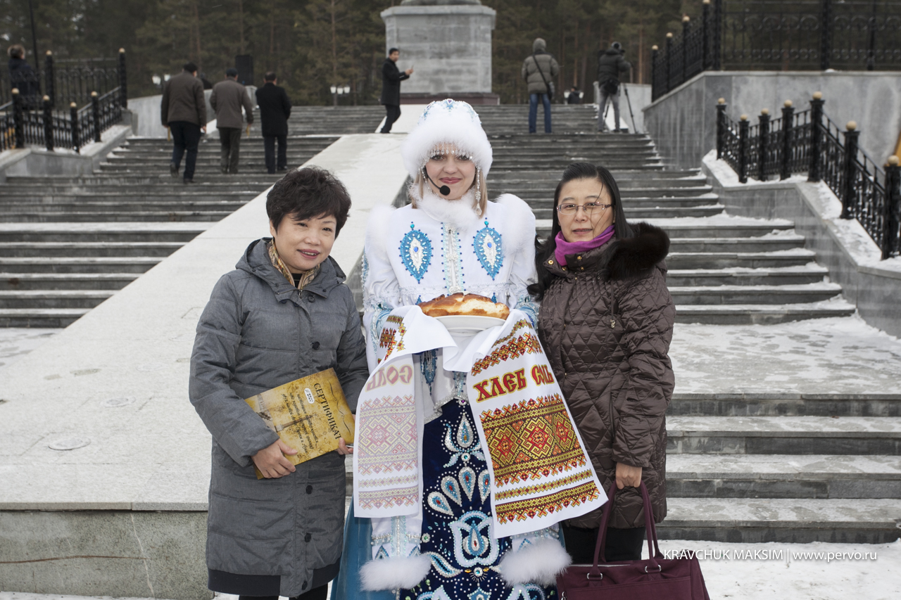Почетных гостей встречали у стелы «Европа-Азия». Теплый прием, как после отметила Цюй Лэй, произвел незабываемые впечатления. Прямо на свежем воздухе для гостей напекли блинов. А первой, кого увидели делегаты, ступив на первоуральскую землю, стала уральская красавица, хлебом-солью приветствующая гостей.