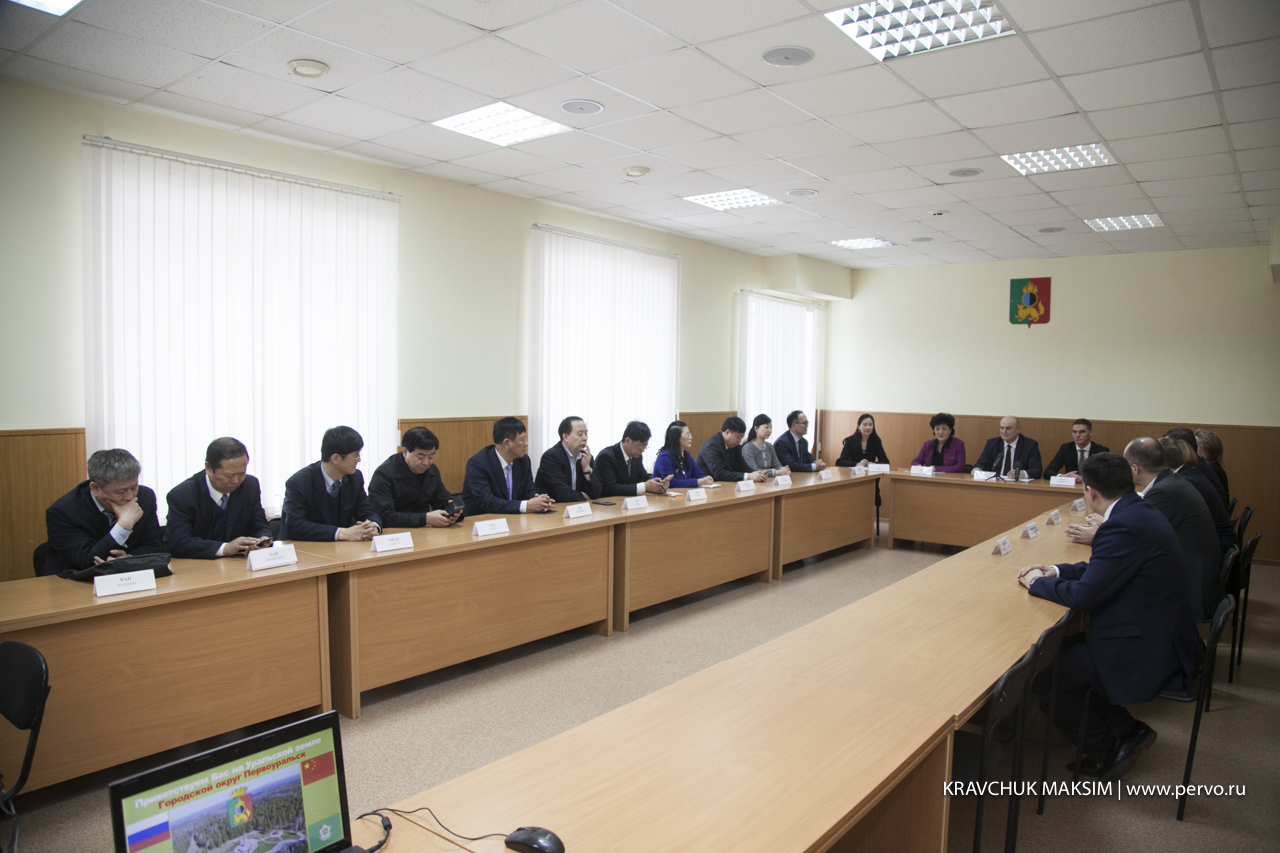 После сотрудники мэрии Харбина отправились в администрацию Первоуральска, где состоялось рабочее совещание Главы городского округа Николая Козлова и членов правительственной делегации Харбина, в состав которой помимо заместителя Председателя Народного правительства города Харбин Цюй Лэй, вошли заместитель генерального секретаря партийного комитета г. Харбин Шань Гоцзюнь, Председатель Комитета содействия развитию международной торговли Ли Вэй, начальник Канцелярии иностранных дел Народного Правительства Гао Хуэйминь, начальник Управления по делам культуры телерадиовещания и печати Лю Цзин, начальник Управления науки и технологии Народного правительства Ли Чжицзе и другие чиновники. На совещании обсудили возможные направления развития сотрудничества Первоуральска и Харбина.