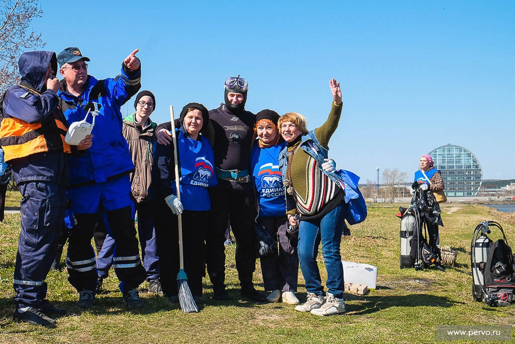 Но не только набережная, но и берег, и дно Нижнего пруда стали чище после партийного субботника. Водолазы муниципальной службы спасения, экипировавшись, опускаются на дно. «Первый улов» достают спустя несколько минут – старые покрышки от «КАМАЗа», разбитые бутылки. Пластиковые «братья» последних до сего дня «украшали» водную гладь пруда – убрали и их. Эту миссию взял на себя Глава Администрации Первоуральска Алексей Дронов, также поддержавший партийный субботник. Для этого на воду спустили плавсредство – так с лодки и вылавливались бутылки и пивные банки, зачем-то брошенные кем-то в воду.