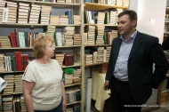 Глава администрации Алексей Дронов осмотрел библиотеку в сопровождении замдиректора по работе с детьми Ольги Исакевич.