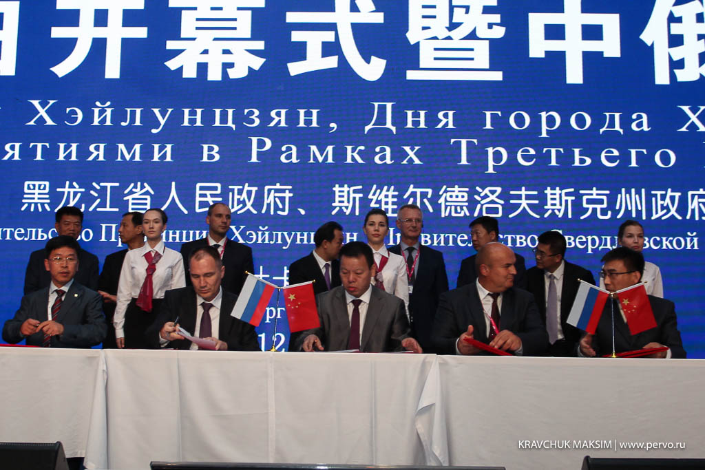 На торжественном открытии дней провинции Хэуйлунцзян и дня города Харбина, которые проходили в рамках Третьего Российско-Китайского ЭКСПО присутствовали Председатель Правительства Свердловской области Денис Паслер, первый заместитель Председателя Владимир Власов, руководители Министерств и ведомств региона. Китайскую Народную Республику представляли Мэр Харбина - Сун Сибинь и Губернатор провинции Хэйлунцзян - Лу Хао.