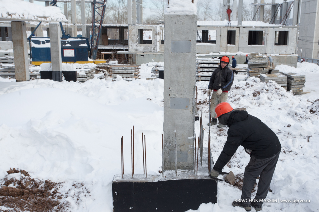 - Да, снег нам хлопот доставил предостаточно, но мы его убрали. Теперь ведем реальные работы, - соглашается со своим коллегой мастер монолитчиков Константин Савин. - Завезли все необходимое, рабочие сегодня занимаются вязкой арматурной сетки, которая, по готовности, устанавливается на место. Завтра привезем опалубку, а в конце недели начнем заливку подвала второго дома (на первом эти работы успел выполнить старый подрядчик – авт.). Работаем без выходных, по 12 часов в сутки. Все строители у нас – вахтовики. По графику к 20 марта все монолитные работы должны быть нами закончены.