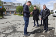 После улицы Калинина Валерий Хорев проверил качество выполнения ямочного ремонта на улице Строителей, на участке от улицы Ульяны Громовой и далее вверх по улице Строителей.