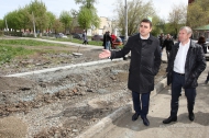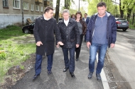 Осмотрел Валерий Хорев состояние дороги на улице Школьная, где дорожное полотно менялось уже не частично, а полностью. Проинспектировал тротуары, в частности на улице Химиков, ведущей к школе №12.