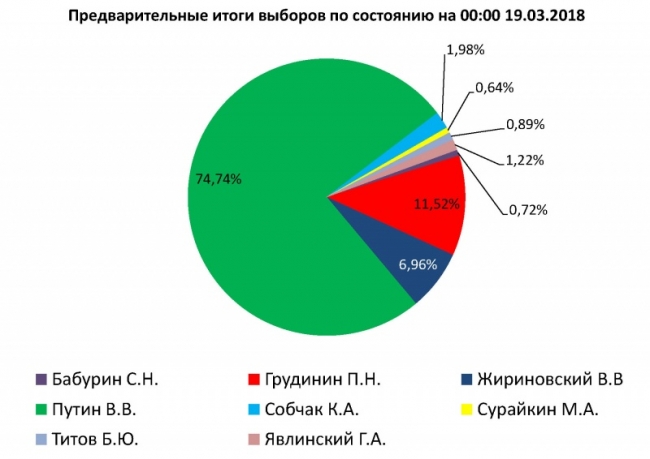Путин лидирует с 75,91 процента голосов избирателей после обработки данных 70 процентов протоколов участковых избиркомов