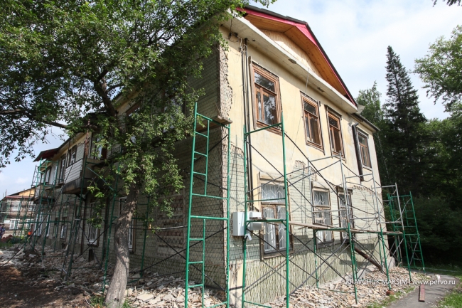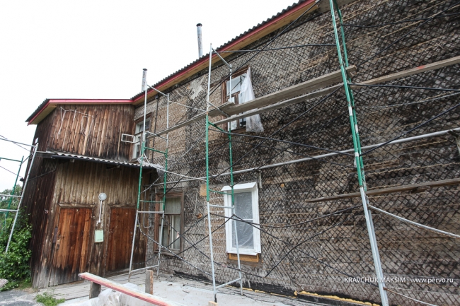 Оба здания построены в 1939 году – зимой в них холодно, летом во время дождей протекала крыша. Последний раз дом ремонтировали в 1986 году. Этим летом рабочие приступили к замене кровли, заново провели электропроводку, сейчас снимают старую штукатурку.