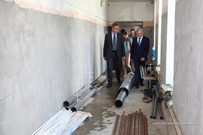 Школы Школу №40 в Вересовке комиссия также не обошла вниманием: проверяющие прошли по кабинетам и коридорам, где идет ремонт.