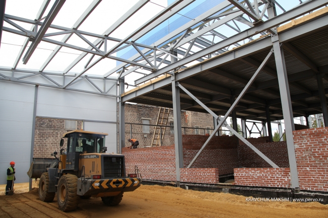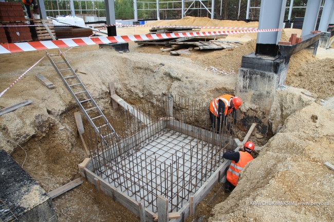 На стройплощадку с инспекцией прибыл временно исполняющий обязанности главы города Игорь Кабец. Он проверяет, как выровняли каркас и обустроили фундамент для насосов, какими сделали перекрытия второго этажа и где установили внешние панели здания. В сентябре здесь планируют начать монтаж оборудования для очистки воды.