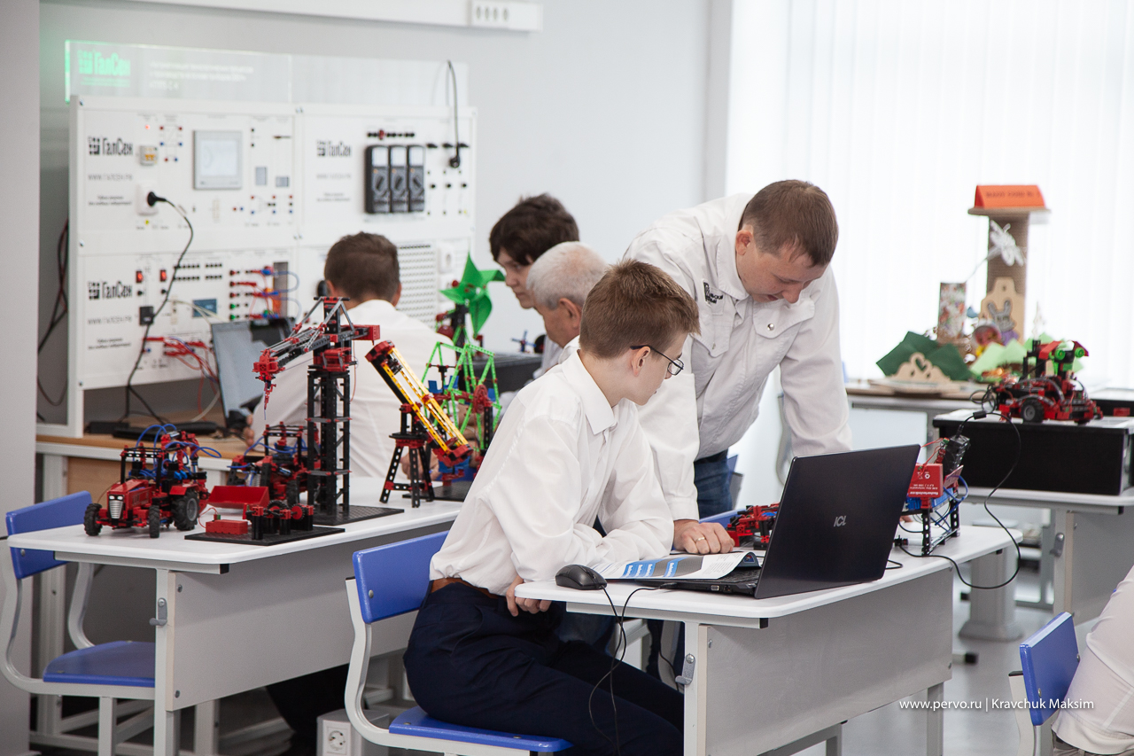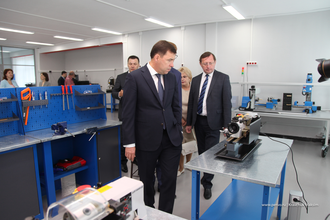 Следующей точкой визита Губернатора Свердловской области Евгения Владимировича Куйвашева в Первоуральске стала общеобразовательная школа №1, где на ее базе в 2018 году впервые в стране был реализован проект «Класс технологий».