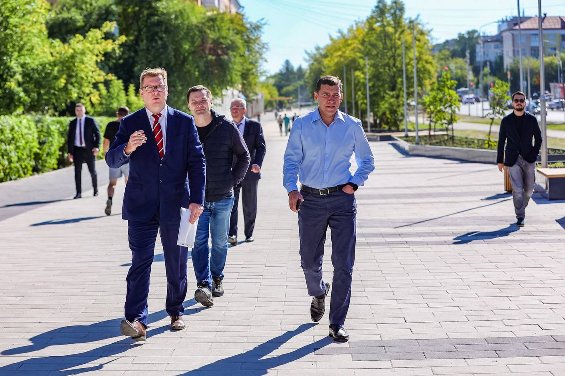 Евгений Куйвашев прогулялся по будущей аллее, которая протянется от улицы Ватутина до улицы Ленина. Строители уже подготовили основание аллеи, установили цветники, уложили газоны и покрыли дорожки плиткой. Установлены малые архитектурные формы. Уже скоро начнется озеленение и посадка деревьев. Закончить работы планируется до конца сентября.