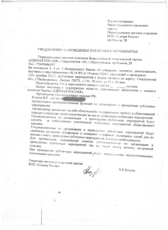 Сегодня в Первоуральске в 14-00 должна была пройти акция от «Единой России», но она отменяется. ЕР хотели поблагодарить первоуральцев за голосование, а также отметить таким образом десятилетие свой партии.