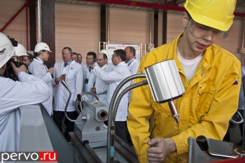 Затем гостям наглядно продемонстрировали высокие технологические возможности финишного центра по производству и обработке труб нефтяного сортамента. Дабы понять и представить масштабы производства, достаточно сказать, что общий объем инвестиций сюда составляет 6 миллиардов рублей. Или вот еще один яркий показатель: производственный план на текущий месяц составляет 7960 тонн насосно-компрессорных и обсадных труб. Основные клиенты финишного центра – такие мощные компании, как «Лукойл», «Роснефть», «Сургутнефтегаз», «Татнефть»… И здесь гостей приятно удивило, что большая часть рабочих трудится в белой одежде.