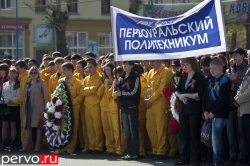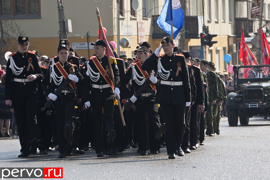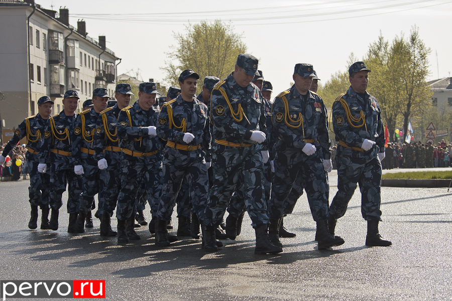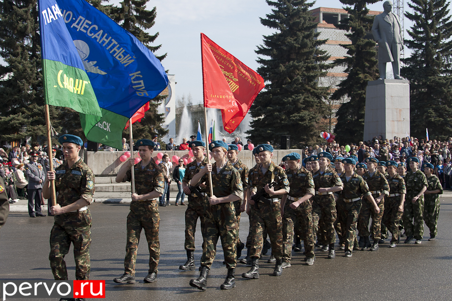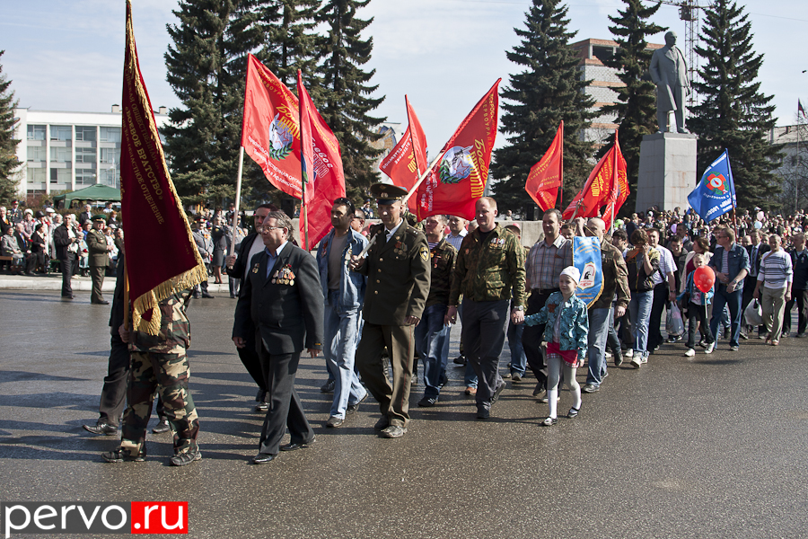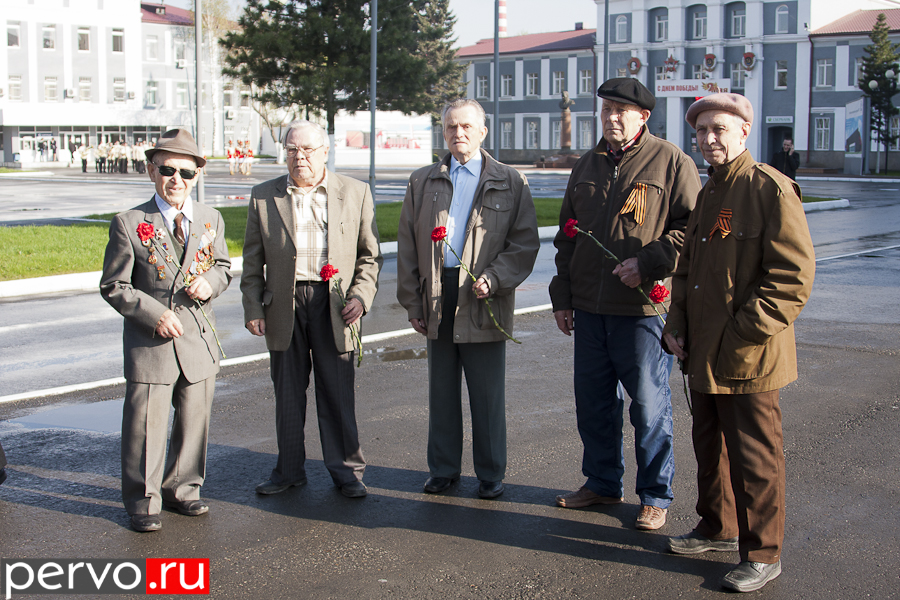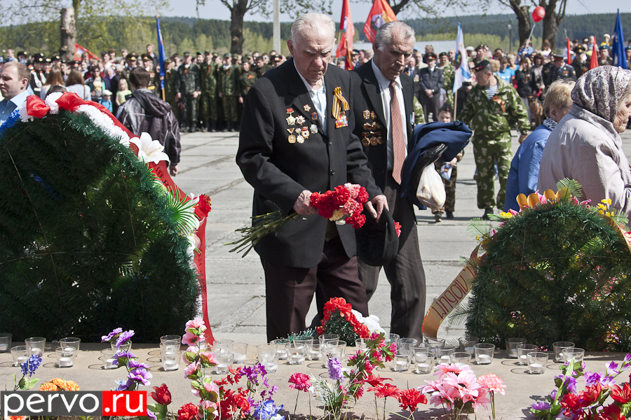 Затем ветеранов отвезли на площадь Победы, где состоялся парад. Перед собравшимися торжественно пронесли почетное знамя города с орденом Трудового Красного Знамени. После поздравительных речей главы Первоуральска Юрия Переверзева и председателя городской думы Марины Соколовой начался сам парад. Открыли его сотрудники Главного управления ФСИН России по Свердловской области, многие из которых принимали активное участие в боевых действиях на Северном Кавказе. Затем торжественным маршем проследовали кадеты и курсанты автошколы, колонна ветеранов «Боевого братства», Союза ветеранов морской пехоты. Изюминкой парада стала послевоенная машина ГАЗ 69, в которой сидели три ветерана войны.