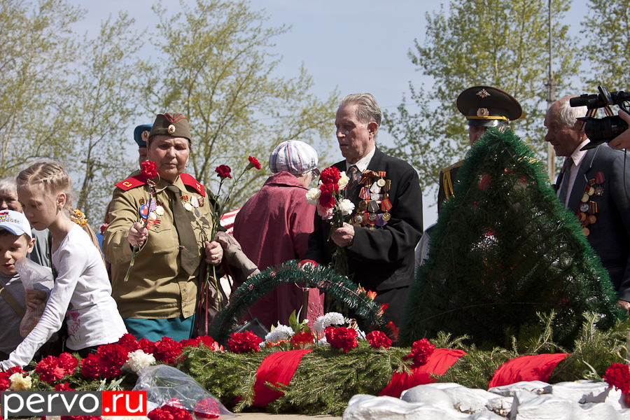 Праздник для ветеранов по традиции начался у Вечного Огня. Там их поздравили совет молодёжи Первооуральского Новотрубного завода и артисты ДК ПНТЗ. Также там работала полевая кухня.