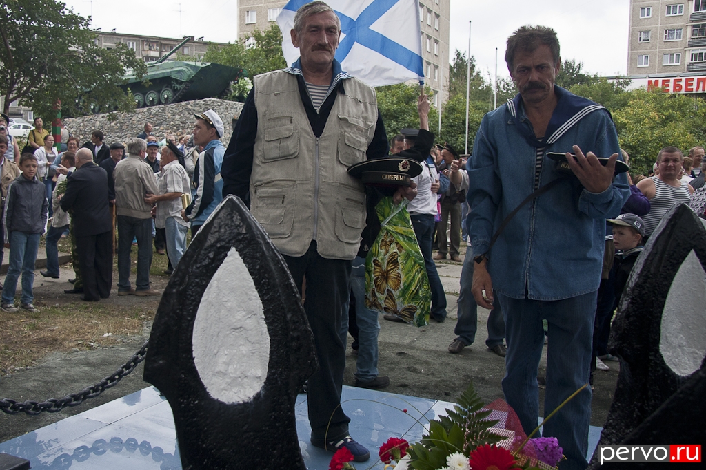 Сегодня, 29 июля 2012 года, в День военно-морского флота России, в Первоуральске в 11:00 состоялось торжественное открытие памятного знака морякам-уральцам. Памятник был установлен в сквере боевой и трудовой славы Первоуральска. Напомним, что там уже установлены памятные мемориалы воинам Афганистана, пограничным войскам и ликвидаторам Чернобыльской аварии.
