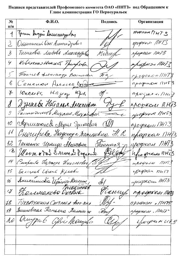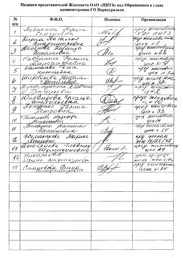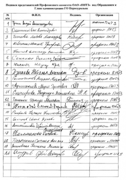 В итоге представители сразу семи общественных заводских организаций решили обратиться к главе города с требованием прекратить войну, посетить ПНТЗ, встретиться с представителями трудового коллектива и отчитаться перед ними. Коллективное письмо подписали представители Совета ветеранов, Совета молодежи, профсоюзного комитета, женсовета, бригадиры и мастера Новотрубного завода.