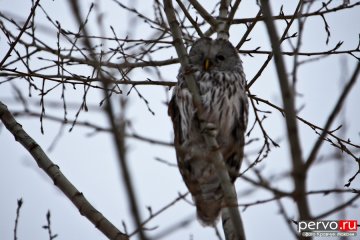 Жители Первоуральска сегодня заметили необычного для большого города обитателя. Звонки о том, что вороны вот-вот заклюют насмерть... сову, около полудня стали поступать на телефон нашего портала www.pervo.ru. Когда мы приехали на место птичьей битвы, то вокруг тополя собрались прохожие и детишки, которые стали фотографировать и живо обсуждать происходящее. Кто-то из прохожих позвонил в службу спасения 112, и через десять минут на место прибыли спасатели.
