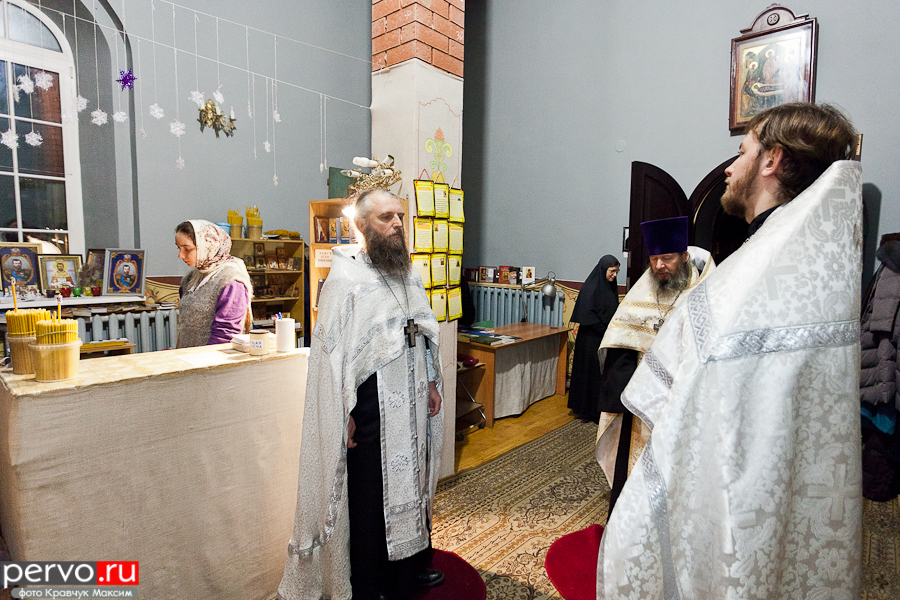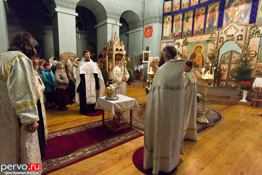Ровно в полночь Божественная литургия прошла и в храме великомученицы Екатерины, которую провел отец Иаков.
