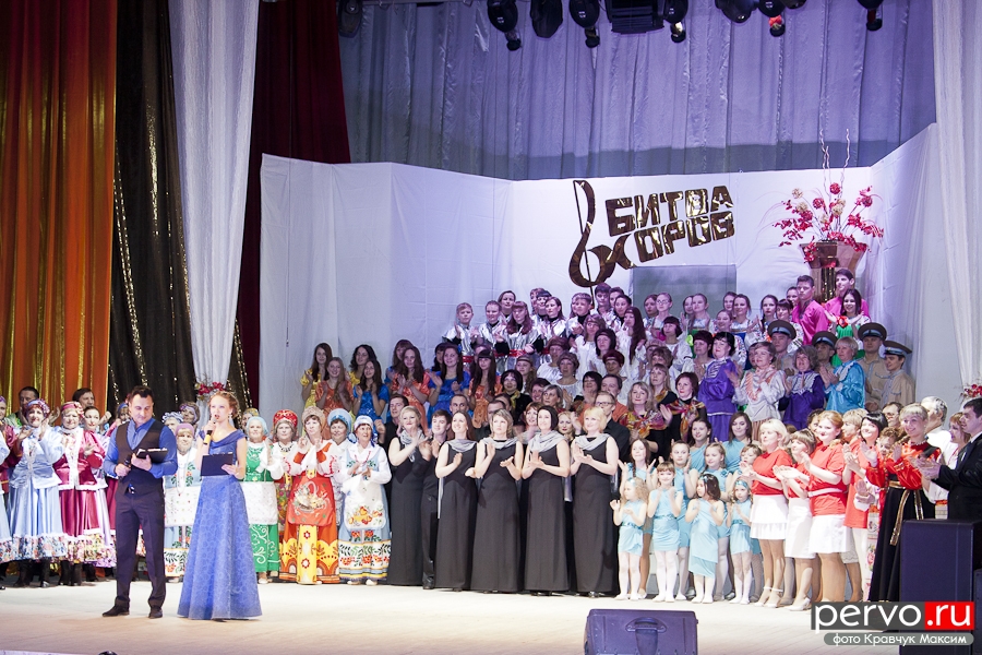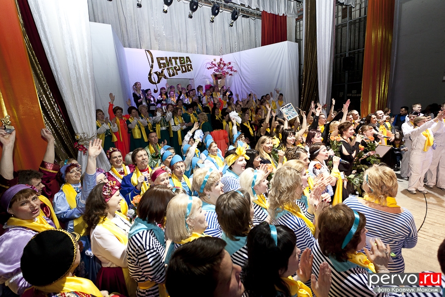 Вчера, 24 апреля, в Первоуральске Дворец культуры и техники ОАО «ПНТЗ» состоялось грандиозное шоу Битва хоров «Под софитами…». В программе было 24 конкурсных номера, над которыми в течение трех месяцев работали 12 хормейстеров и 245 лучших голосов города в возрасте от 5 до 82 лет. В составе жюри входил один из участников хора «Виктория» — победителя всероссийского проекта «Битва хоров» на телеканале «Россия».